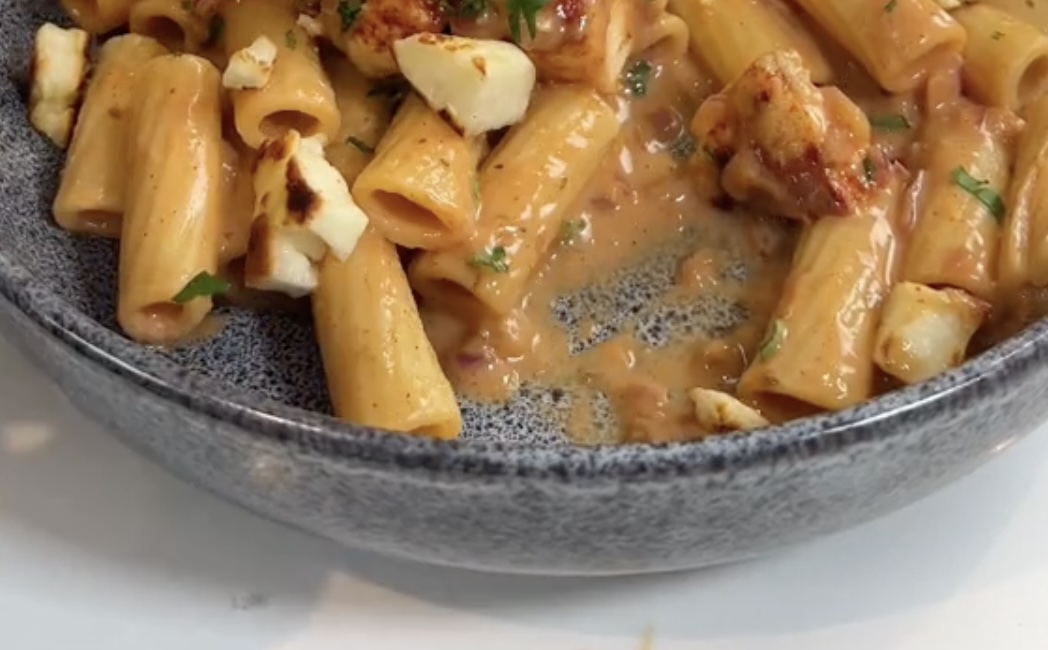 - Plate up the pasta, top with the chicken, diced parsley and finish with the halloumi.